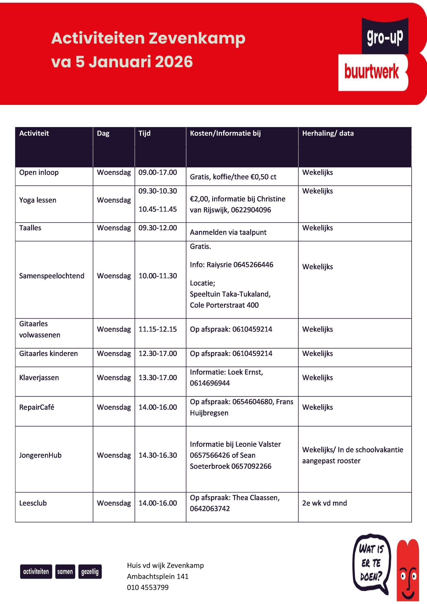 Huis van de Wijk Zevenkamp | Ambachtsplein 141 | elke woensdag van 13.30 - 17.00 uur kunt u klaverjassen | Informatie...