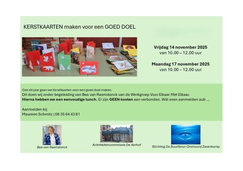 Dag 2 kerstkaarten maken, onder begeleiding van Bea van Raemdonck van de Werkgroep Met Elkaar voor Elkaar.