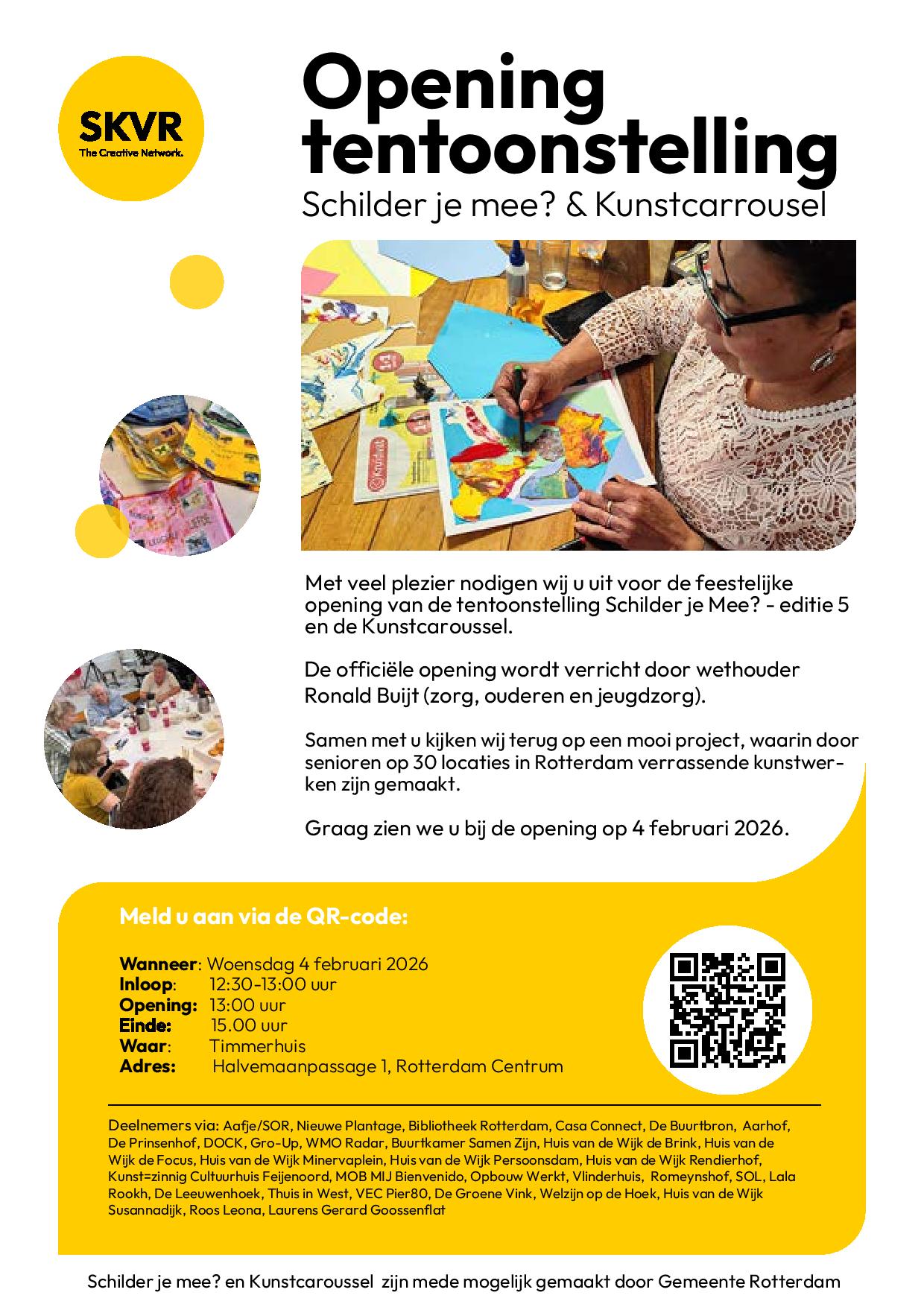 in het Timmerhuis | Halvemaanpassage 1 (Rotterdam-Centrum) | woensdag 4 februari 2026 | 13.00 - 15.00 uur (inloop vanaf 12.30 uur) | feestelijke opening van de tentoonstelling.